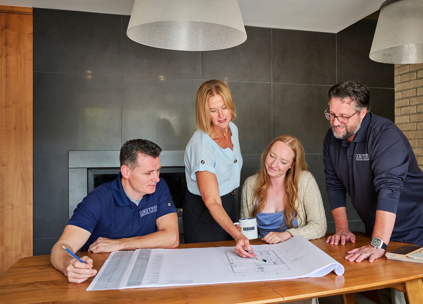 Throughout your renovation or custom build journey, you will be supported by a dedicated Amsted team specifically chosen for you, including your Project Manager and Coordinator, Designers (architectural and selections), and experienced construction professionals — all working together to bring your vision to life with care, expertise, and attention to detail.