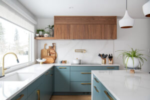 This main floor transformation included a completely new kitchen, reimagined entryway with built-in storage, and modern sliding doors to bring in more light from the living room.