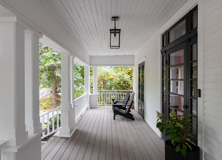 We combined functionality with timeless appeal to ensure the home performs beautifully for years to come. Comprehensive waterproofing and a new water main safeguard adding long-term reliability, while fixture placements are tailored to the homeowner’s taller height for daily comfort. To preserve character, we maintained original details such as the front posts, pillars, and stair railing, while restoring the Craftsman-style front porch with durable composite decking that matched the home’s original look. Inside, modern finishes—including concrete-inspired countertops, vessel sinks, and floor-to-ceiling tiles—add elegance and durability. The result is a cohesive, efficient design that balances historic charm with modern comfort.
