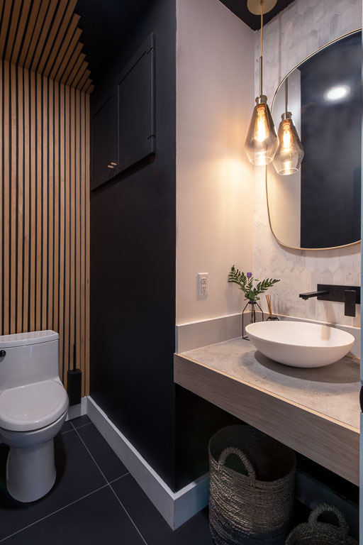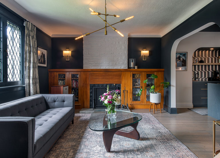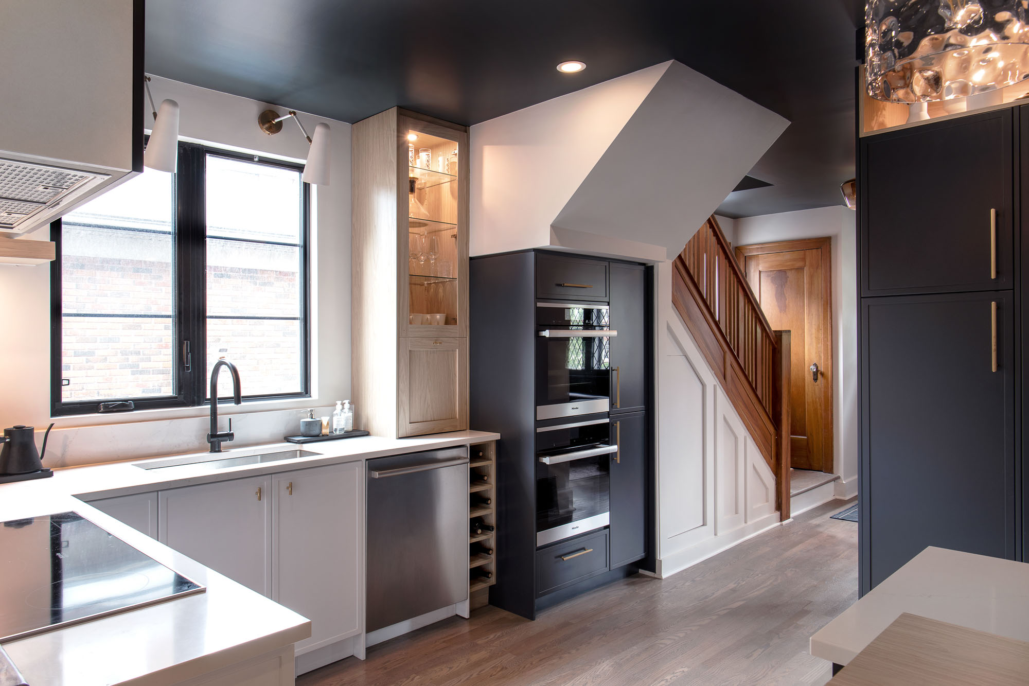 We reimagined this home with an expansive kitchen renovation, spanning the full width of the house. Designed for connection and entertaining, the space features dual islands, hidden storage, and custom finishes that balance everyday function with dramatic style.