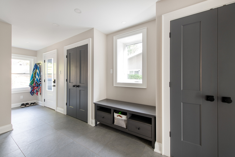 With every detail planned around family life, this home addition and expansion also introduced thoughtful touches that enhance everyday convenience. We created cozy nooks for the children, a spacious mudroom to keep clutter at bay, and an upstairs laundry for efficiency. At the heart of the home, an open-concept kitchen with an oversized island, butler’s pantry, and a wall of glass forms a bright and inviting hub. A cohesive palette of deep greys, warm woods, and soft whites is elevated by refined millwork and detailing, bringing warmth and balance throughout. Behind the scenes, all-new mechanical and electrical systems, insulated masonry walls, and the sustainable reuse of cabinetry ensure the home is as high-performing as it is beautiful—designed for today and ready for tomorrow.