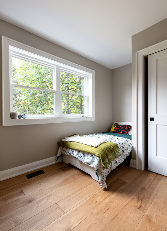 When reimagining this family home, we set out to create space that could grow with the people who love it most. A 10-foot rear addition and small second-storey expansion opened the main floor, adding natural light, extended sightlines, and seamless flow for family gatherings. Upstairs, the design provides private bedrooms for the children and a spa-inspired ensuite for the parents. A cantilevered addition cleverly formed a covered front porch within the existing landscaping, extending outdoor living and enhancing curb appeal. Relocating the basement stairs unlocked new opportunities below grade, allowing room for a rec space, home gym, and bathroom. The result is a home that feels both expansive and connected, inside and out.