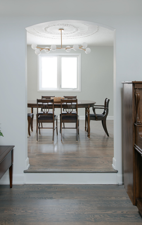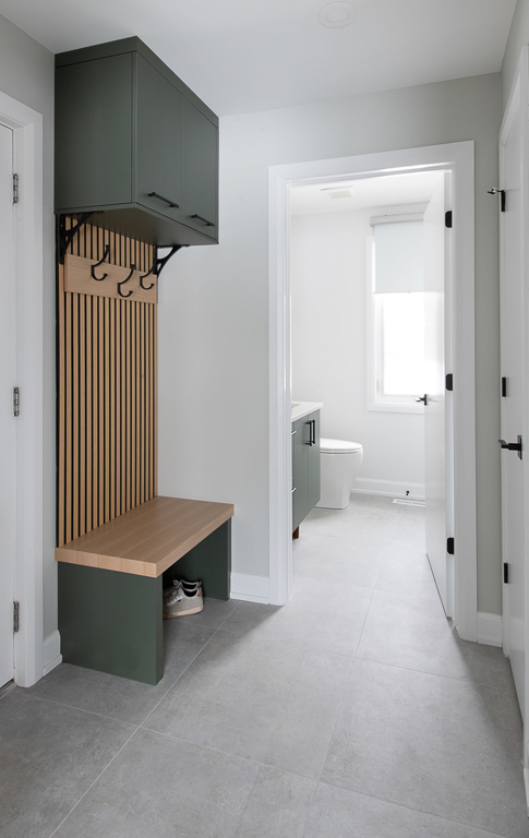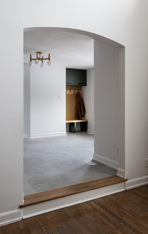 We reimagined the main floor within its original footprint, converting the den and powder room into a full guest suite. In reshaping the mudroom for daily convenience and squaring off the kitchen, we created space for a pantry wall and a generous island. To unify old and new, we refinished the original hardwood floors and introduced new cabinetry, tile, and arched openings. High-performance finishes, integrated storage, and repurposed details elevate everyday living while preserving the home’s character. The result is a home that feels cohesive, adaptable, and ready to serve the family for years to come.
