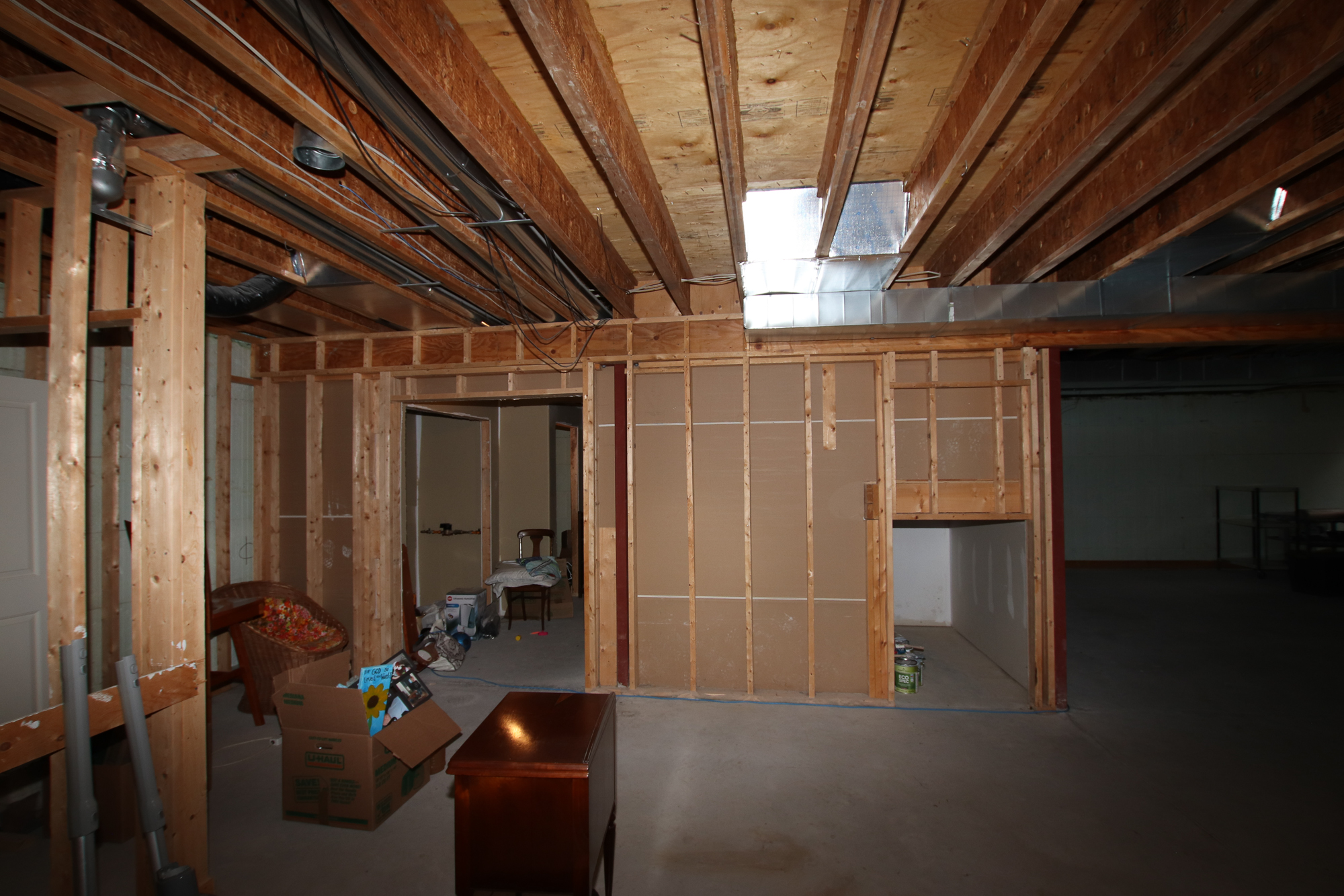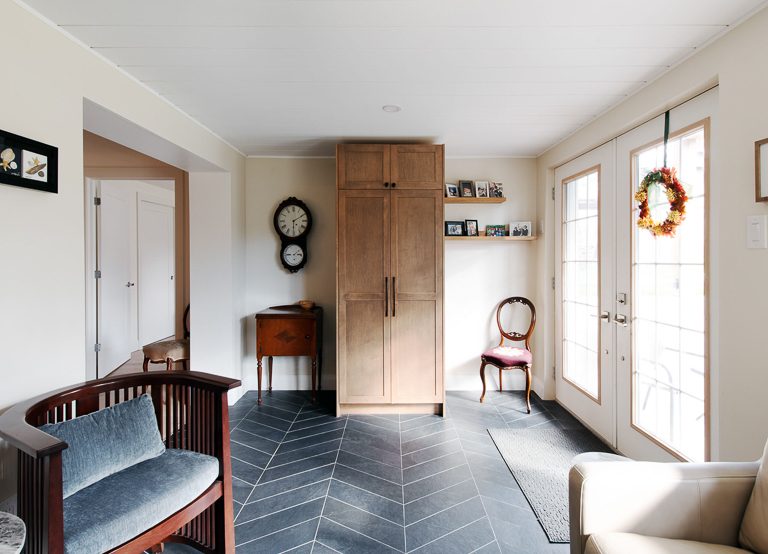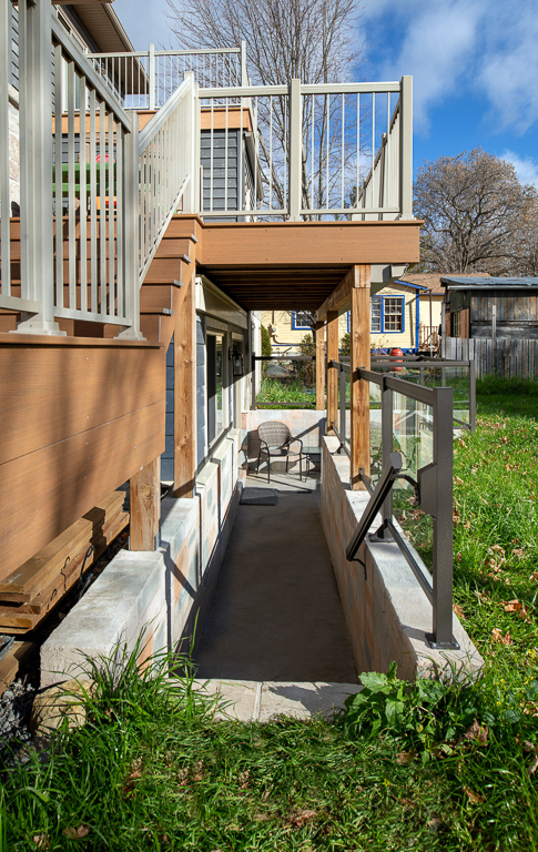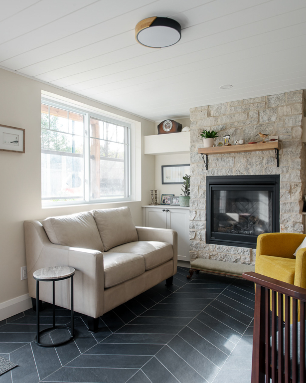 We set out to transform the basement into a fully independent suite, balancing accessibility and livability. A walkout addition beneath the existing deck introduced natural light, while structural excavation, frost walls, and grading ensured seamless integration with the home. Radiant in-floor heating within a new slab eliminated the need for bulky ductwork, paired with luxury vinyl plank flooring for warmth and durability. The layout accommodates a full kitchen, open-plan living and dining area, bathroom, bedroom, laundry, and generous mudroom, every inch carefully planned for function and flow.