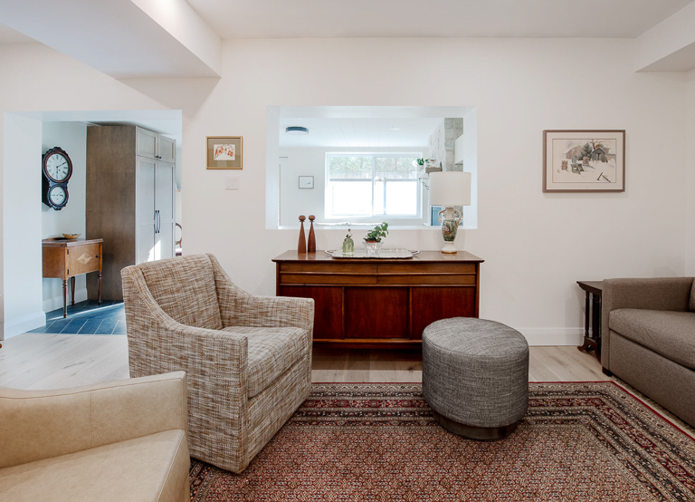 We reimagined this rural basement as a bright, self-contained ADU (Accessory Dwelling Unit), custom-built to house aging parents now and flexible enough to serve as a legal rental unit in the future. Deliberate design choices maximize space, light, and accessibility, creating a home that adapts.