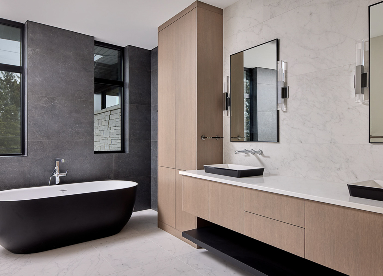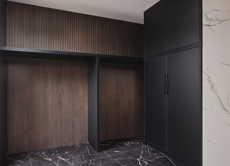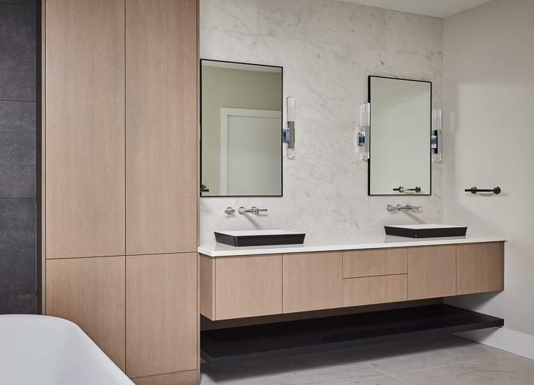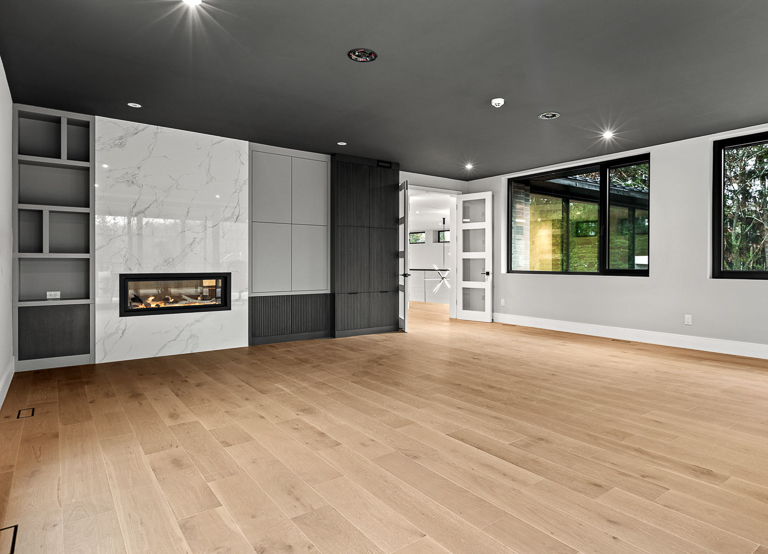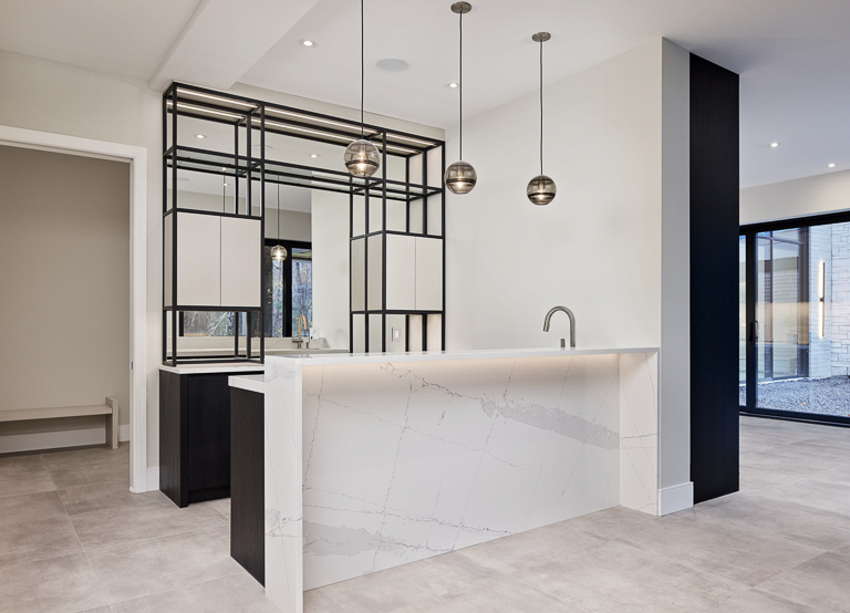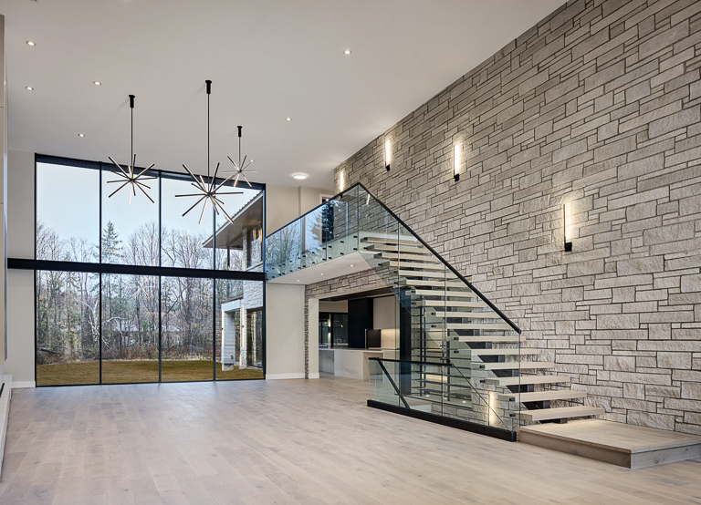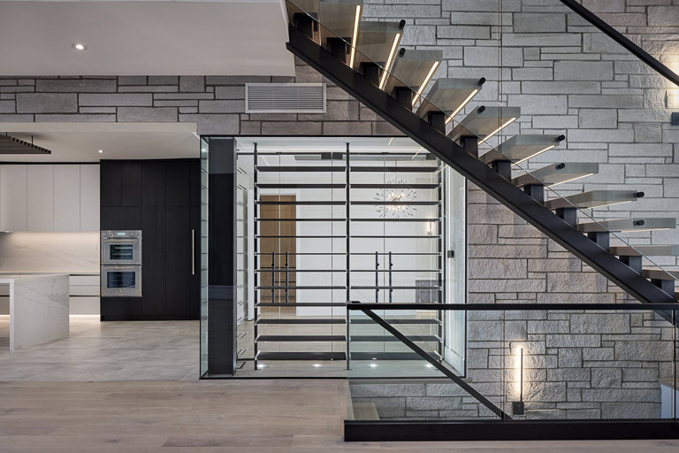 Behind the luxury, performance was central. A hybrid structural system enabled expansive spans and complex spaces, while integrated automation, radiant heating, and dedicated HVAC ensure comfort and efficiency. For the exterior, the natural palette and refined masonry allow the home to blend seamlessly with its neighbourhood, while custom architectural details add depth and interest. Inside, warm modernism guides the design, with layered materials, integrated lighting, and smart storage elevating everyday living. The result is a custom luxury home that combines bold architectural moves with intimate, livable design.