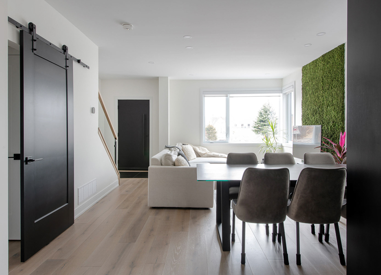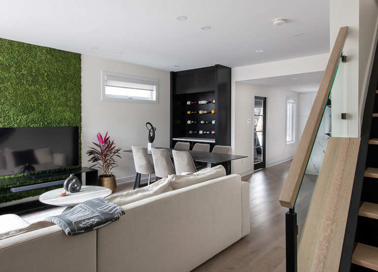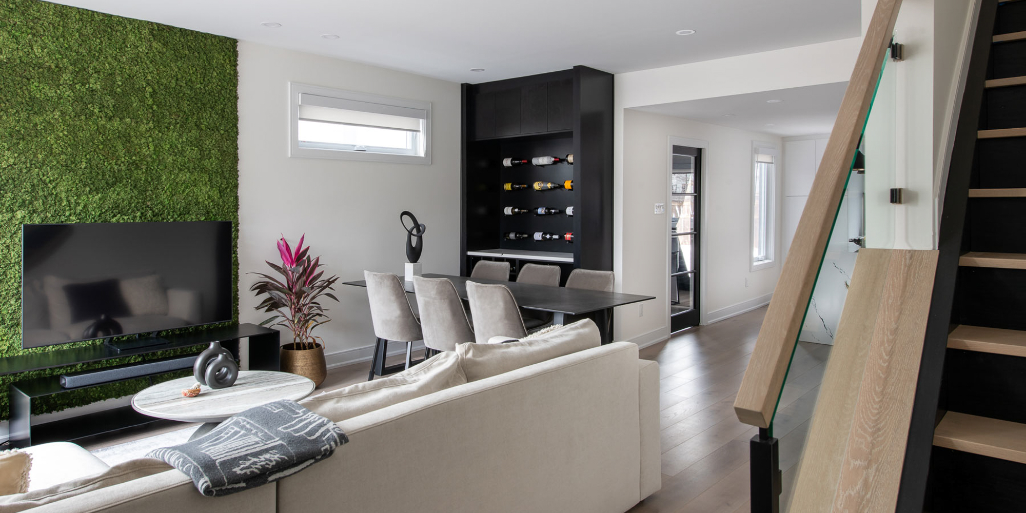 This wartime home renovation maximized a narrow footprint while introducing light, flow, and bold modern style. Extended sightlines and expansive windows transformed the space into a brighter, more connected home designed for everyday living.